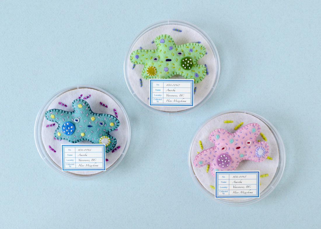 Amoeba brooches for a group show "The Kingdom of Specimens" at ranbu gallery/shop in Osaka, Japan.