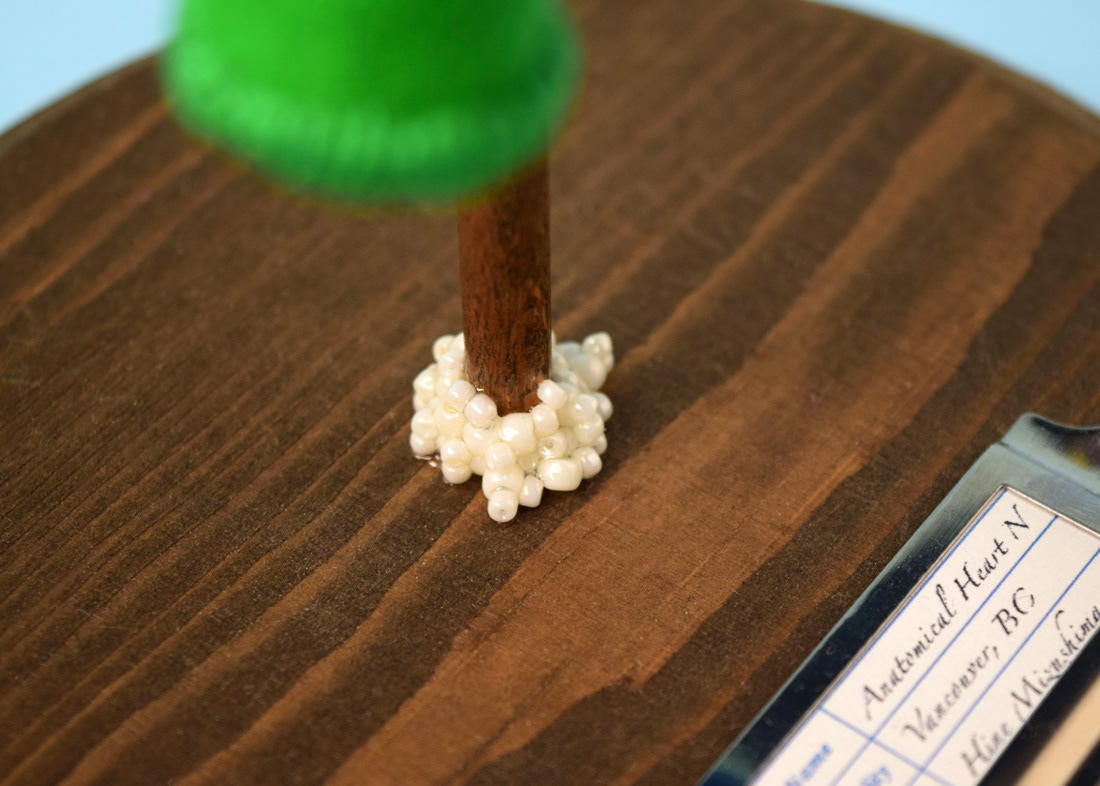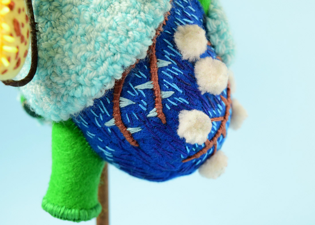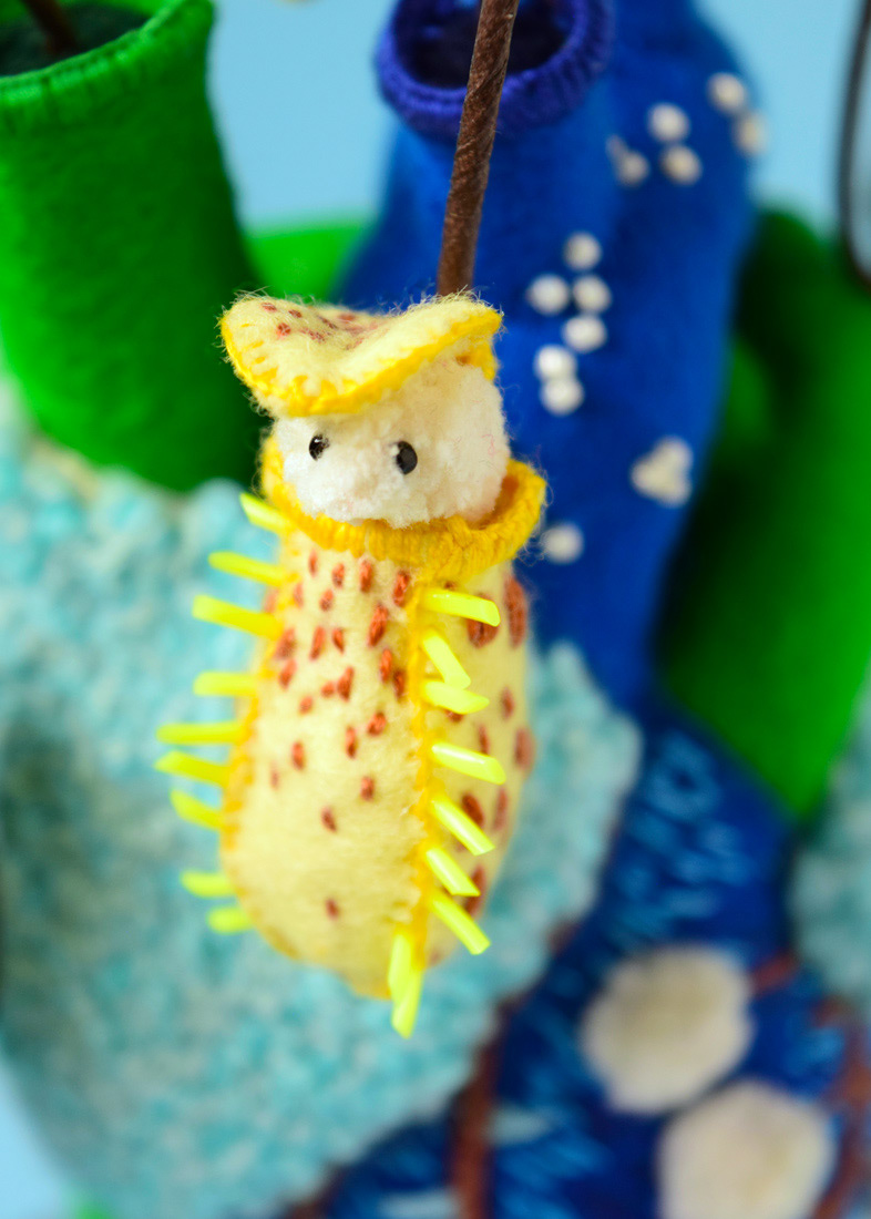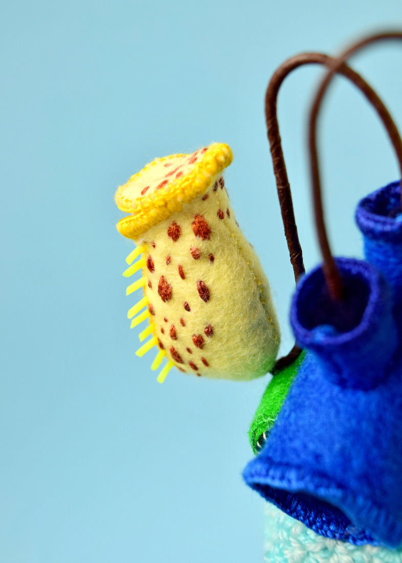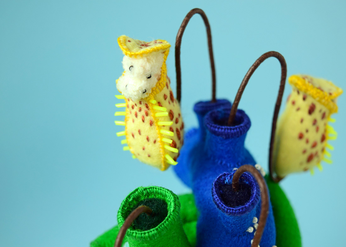 こちらは心臓解剖標本とネペンテスの標本ソフトスカルプチャー作品で、すべて手縫いでパンチニードル技法や刺繍を施しています。