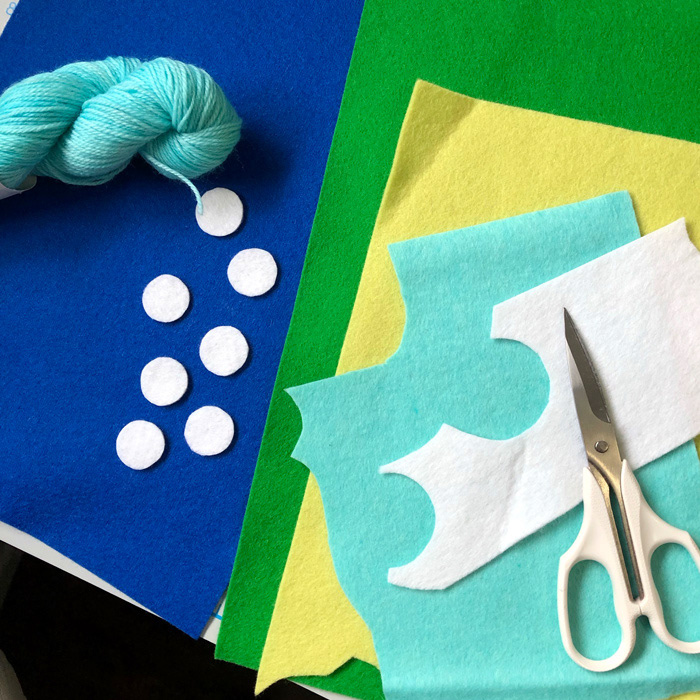 主な素材は、ウールフェルト、ウール毛糸、ガラスビーズ などです。