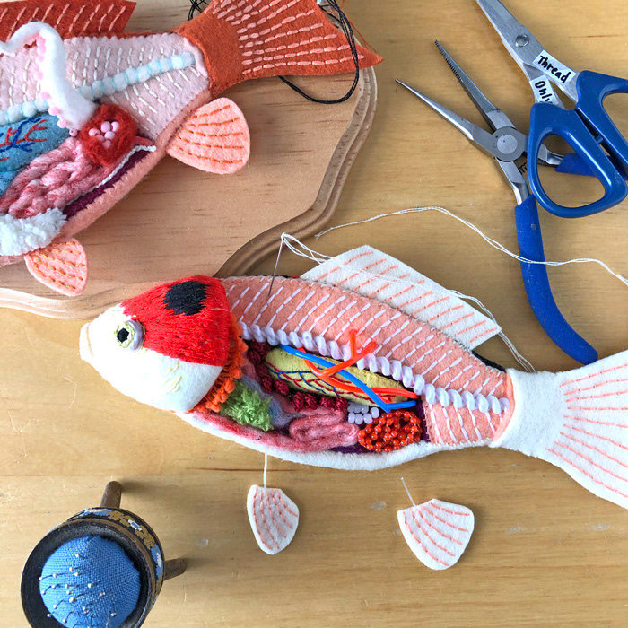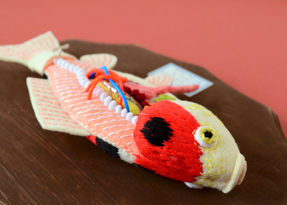 This piece, Anatomy of Nishiki-Koi Fish (sold out) is one of my new soft sculptures for my solo exhibition in Tokyo.
