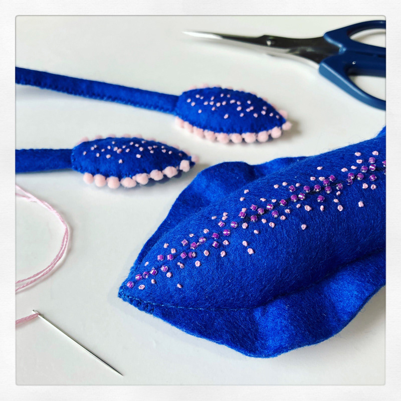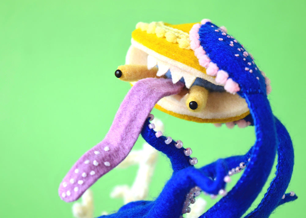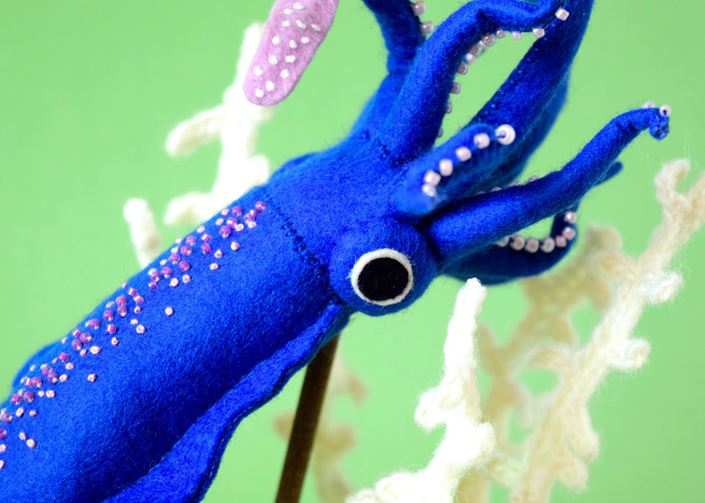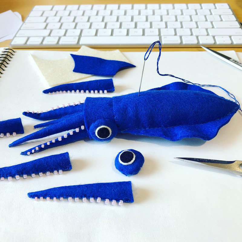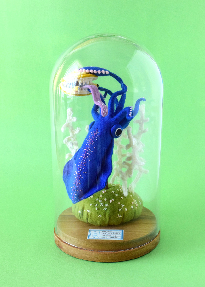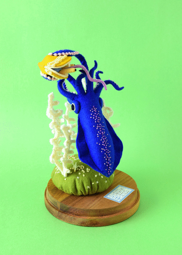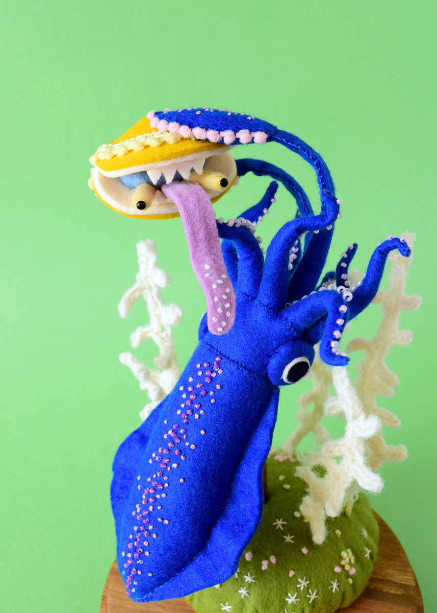 This piece, Baby Squid and Monster Clam (sold out) is one of my new soft sculptures for my solo exhibition in Tokyo.