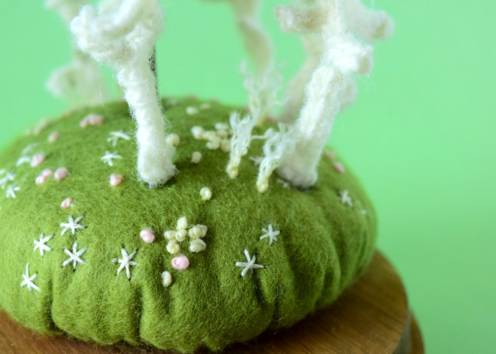 新作標本作品の他、こぎん刺繍ブローチ、フェルトイカブローチ、ポストカード、ヒグチヒネ・コラボなどのグッズも展示販売します。
