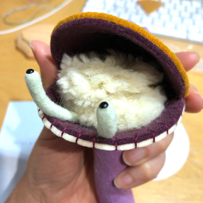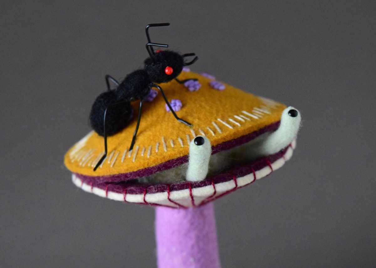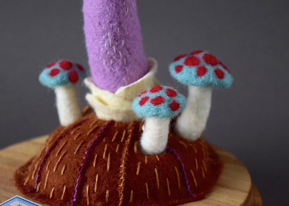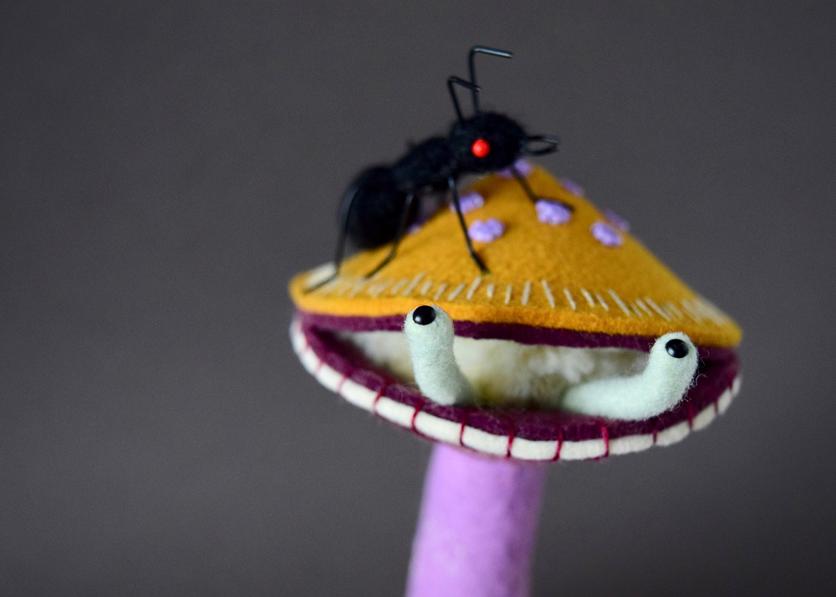 A new soft sculpture, Clam Fungus. This is one of my Carnivorous Fungi series for a specimen themed exhibition at ranbu shop/gallery in Osaka, Japan, opening on April 17, 2019 (sold out).