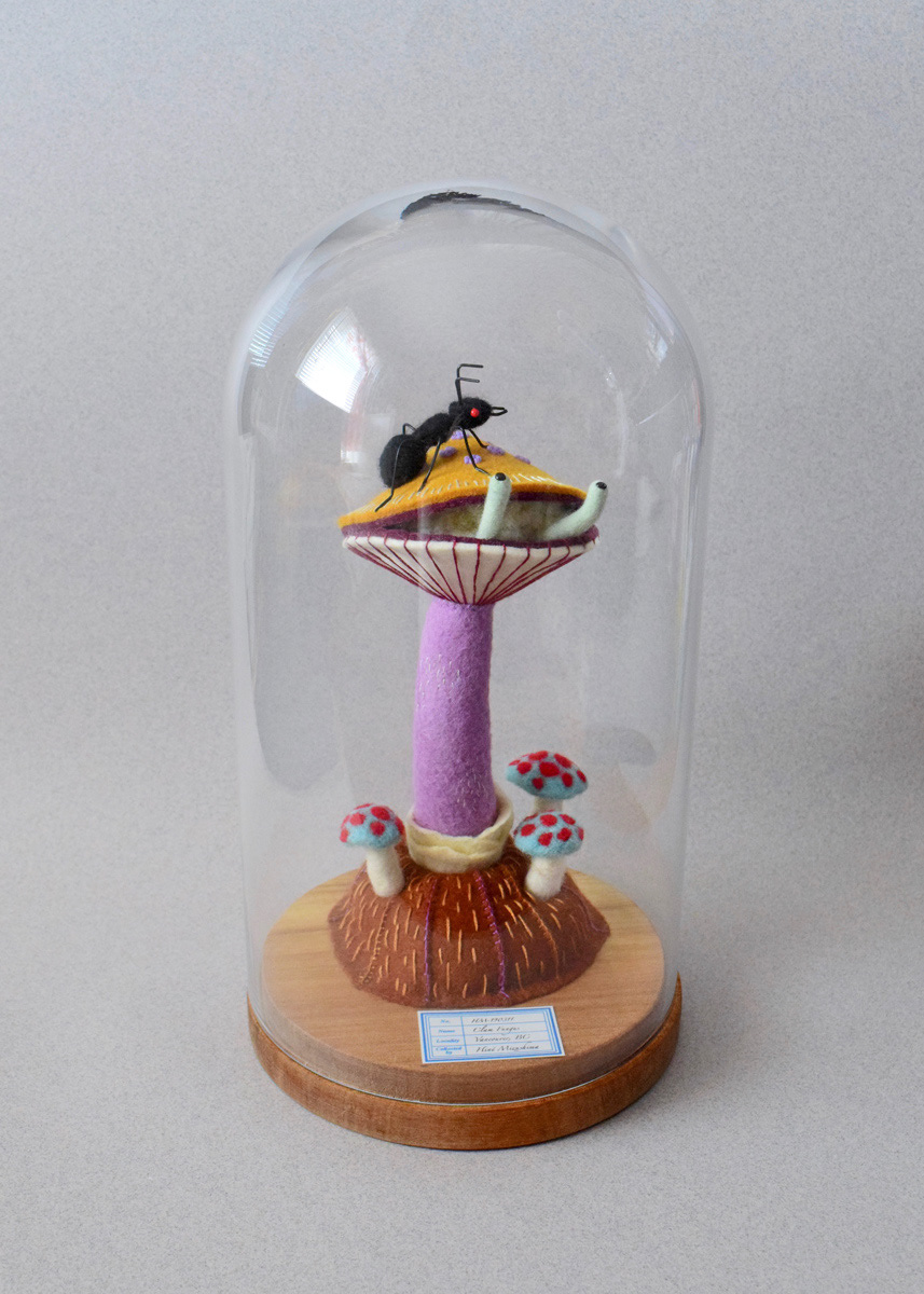 2019年4月17日から始まる大阪のギャラリー/ショップ ranbu の標本テーマの企画展 「標本の王国」に出品する食虫茸シリーズのひとつ「貝目茸」(sold out)。