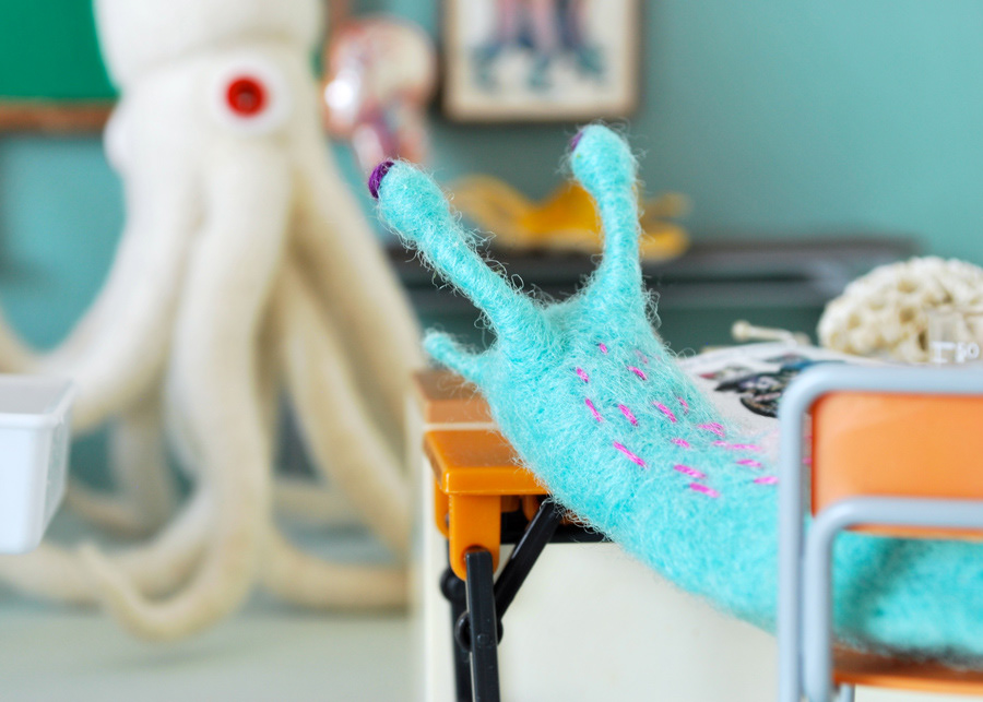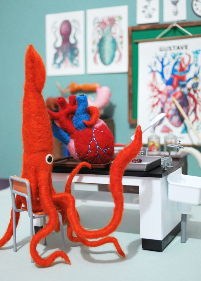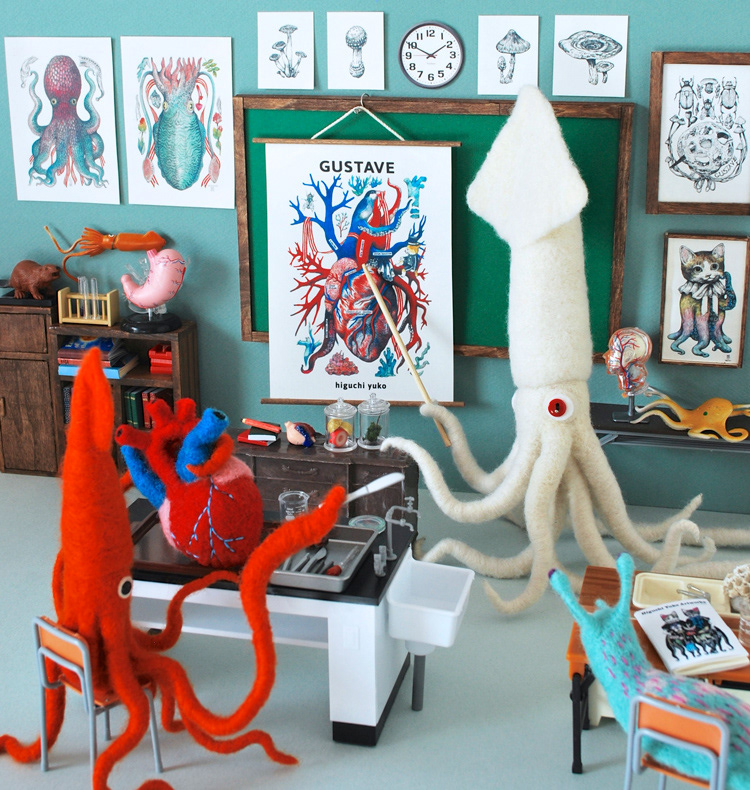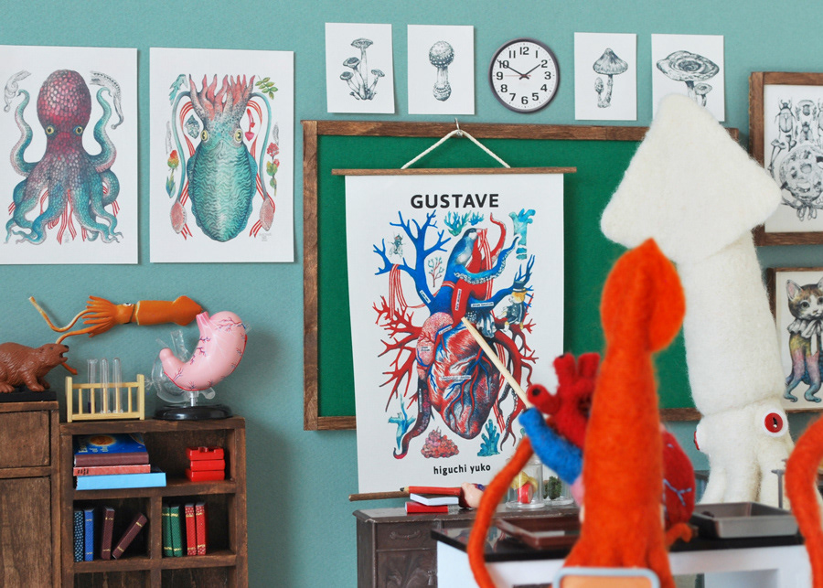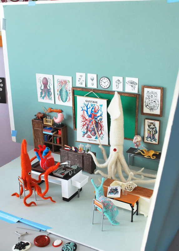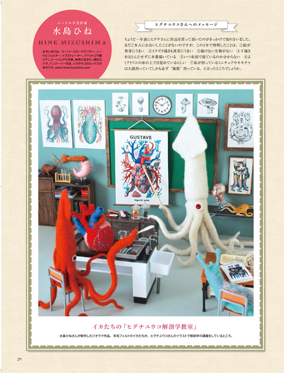 I made a diorama piece with some beautiful drawings (heart, octopus, squid, etc…) by a super talented & popular Japanese artist and my friend, Yuko Higuchi, for the newest issue of a lovely Japanese picture book & character magazine, MOE, which is Yuko's special issue.