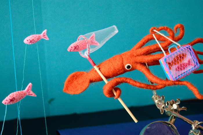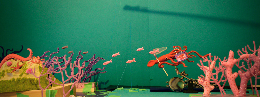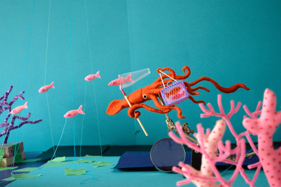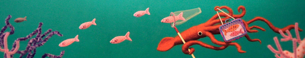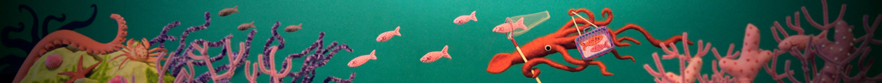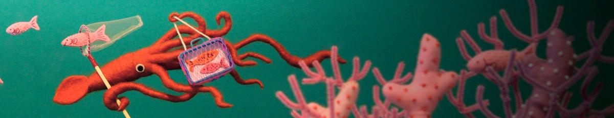 デイリーポータルZのヘッダ画像のお仕事をやらせて頂きました!夏休みの魚採集してるイカの深海ジオラマです。