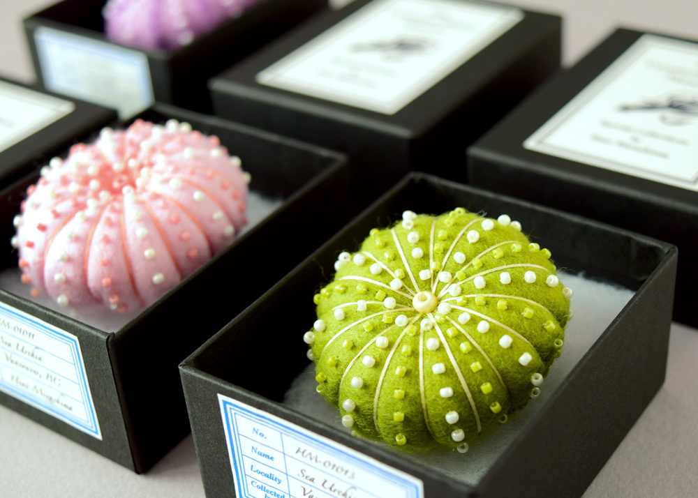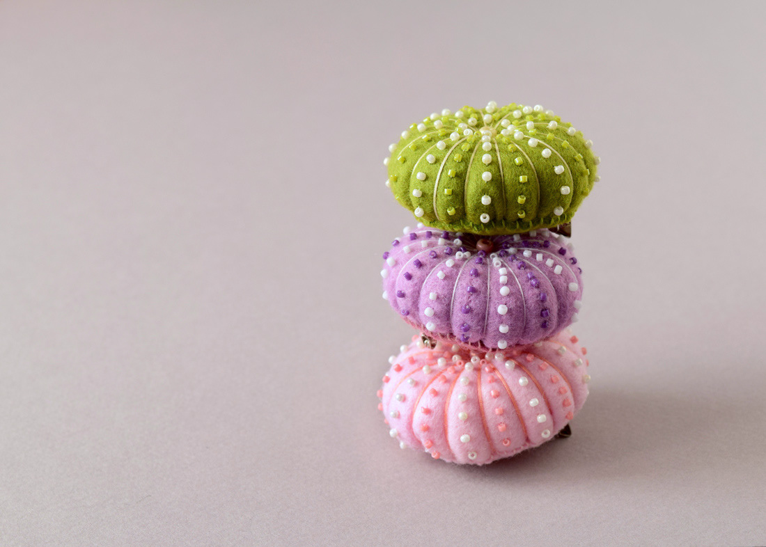 Felt & bead sea urchin brooches. These are sometimes available on my