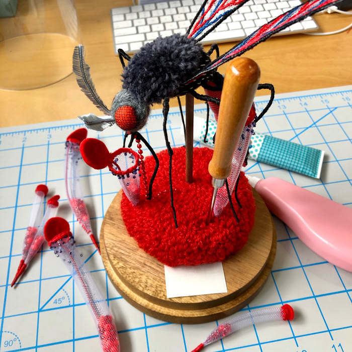 Giant Mosquito felt sculpture for my solo exhibition 2021 at Boris Zakkaten in Tokyo (sold out).