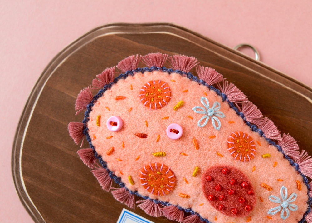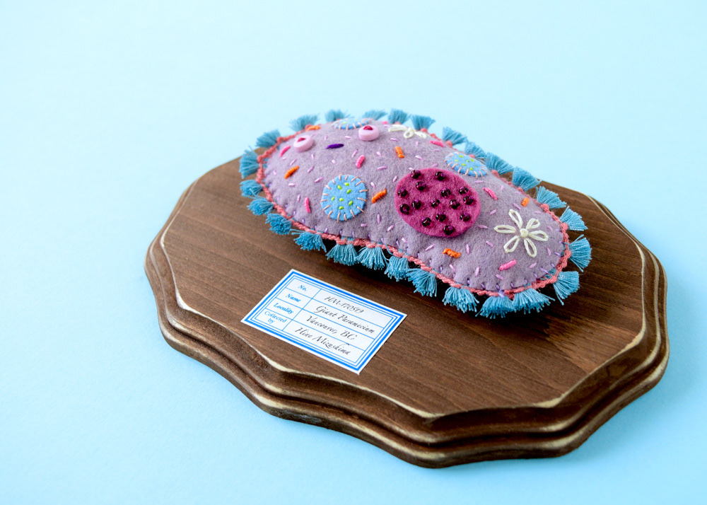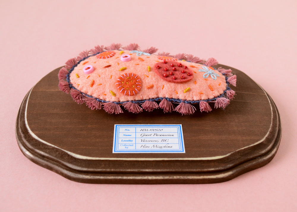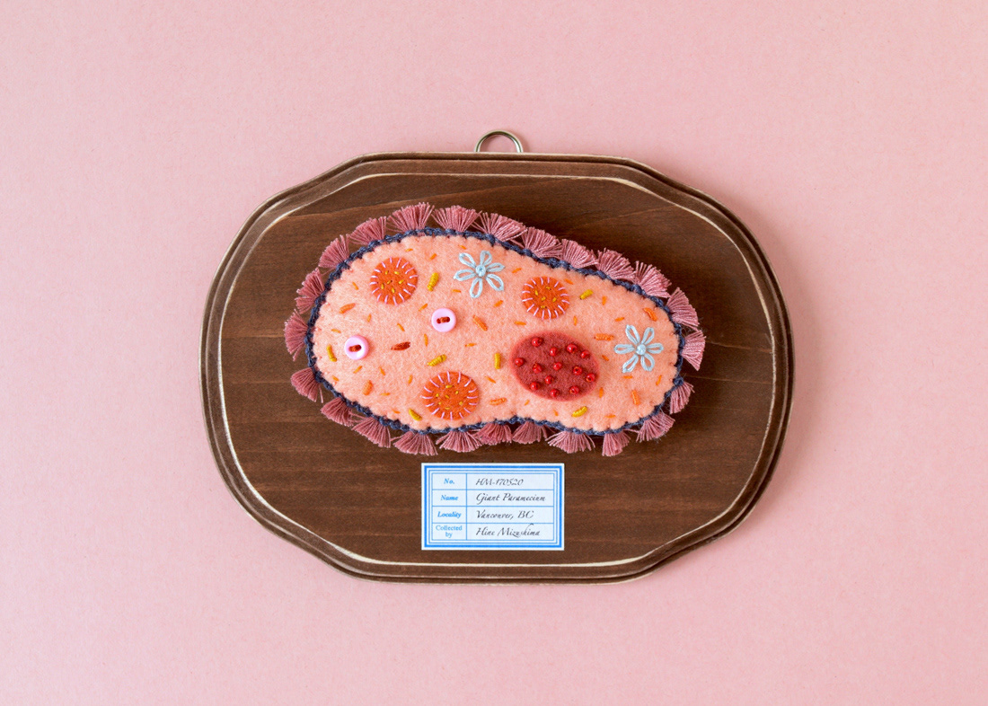 Giant Paramecium on wooden plaque for a group show "The Kingdom of Specimens" at ranbu gallery/shop in Osaka, Japan.
