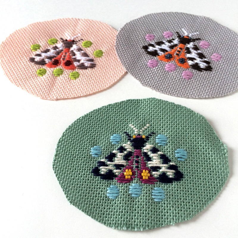 Kogin Embroidered Moth Brooches