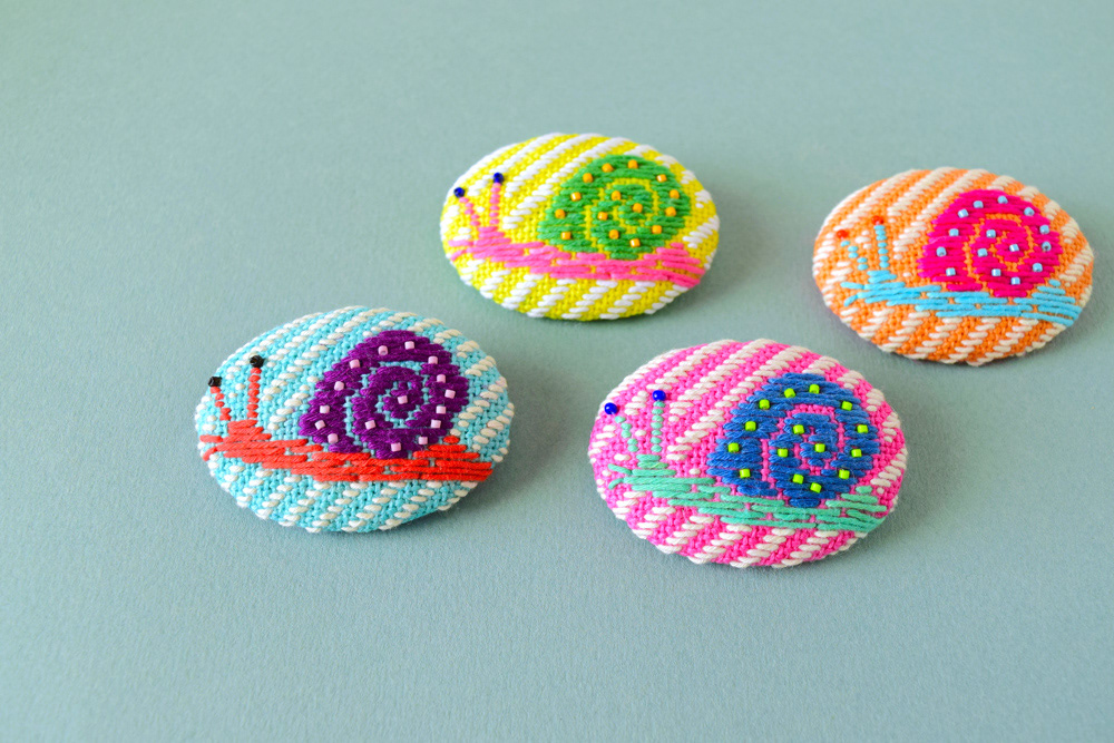 Kogin Embroidered Snail Brooches