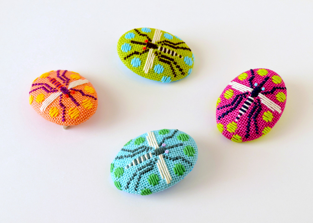 Kogin Embroidered Fly Brooches
