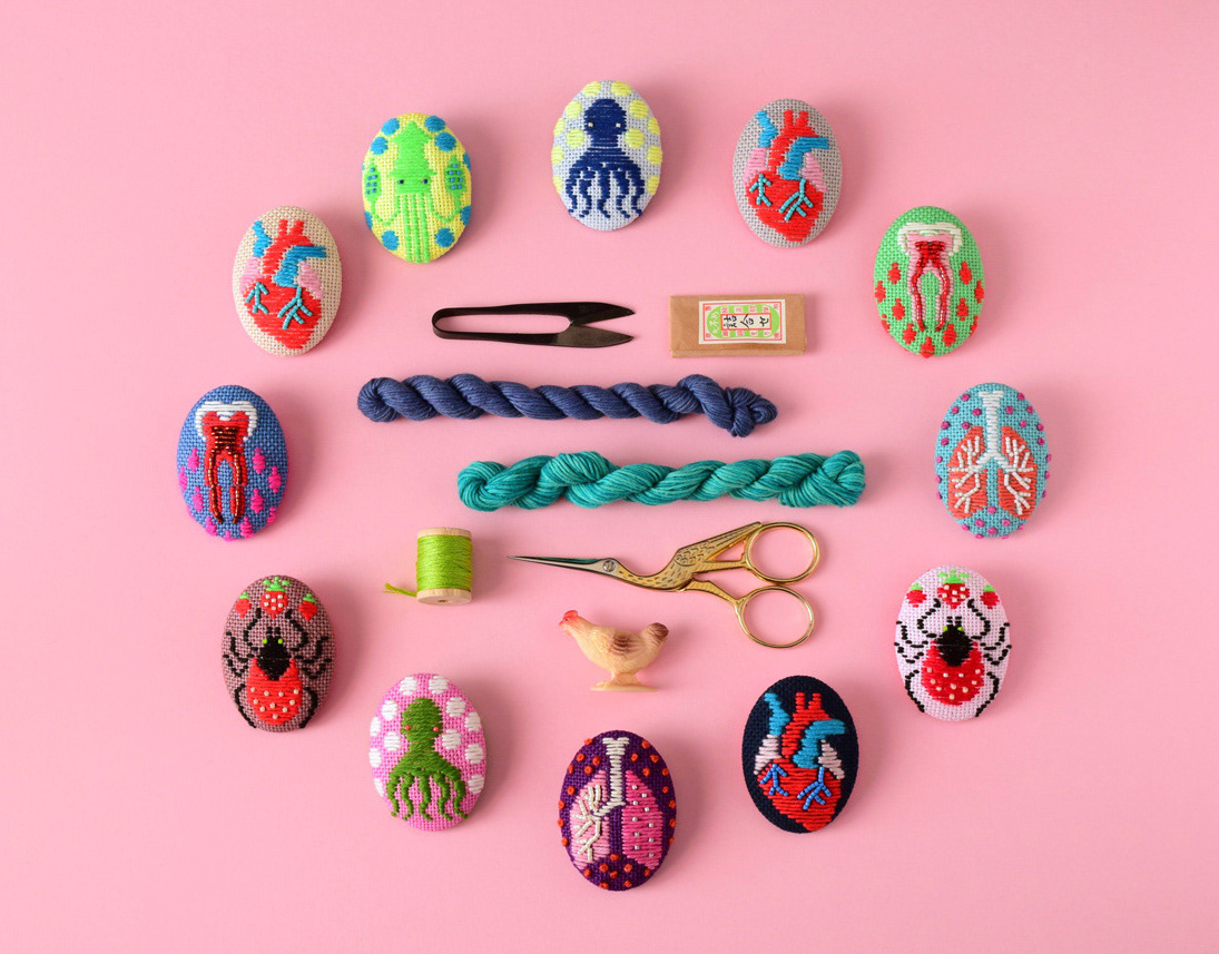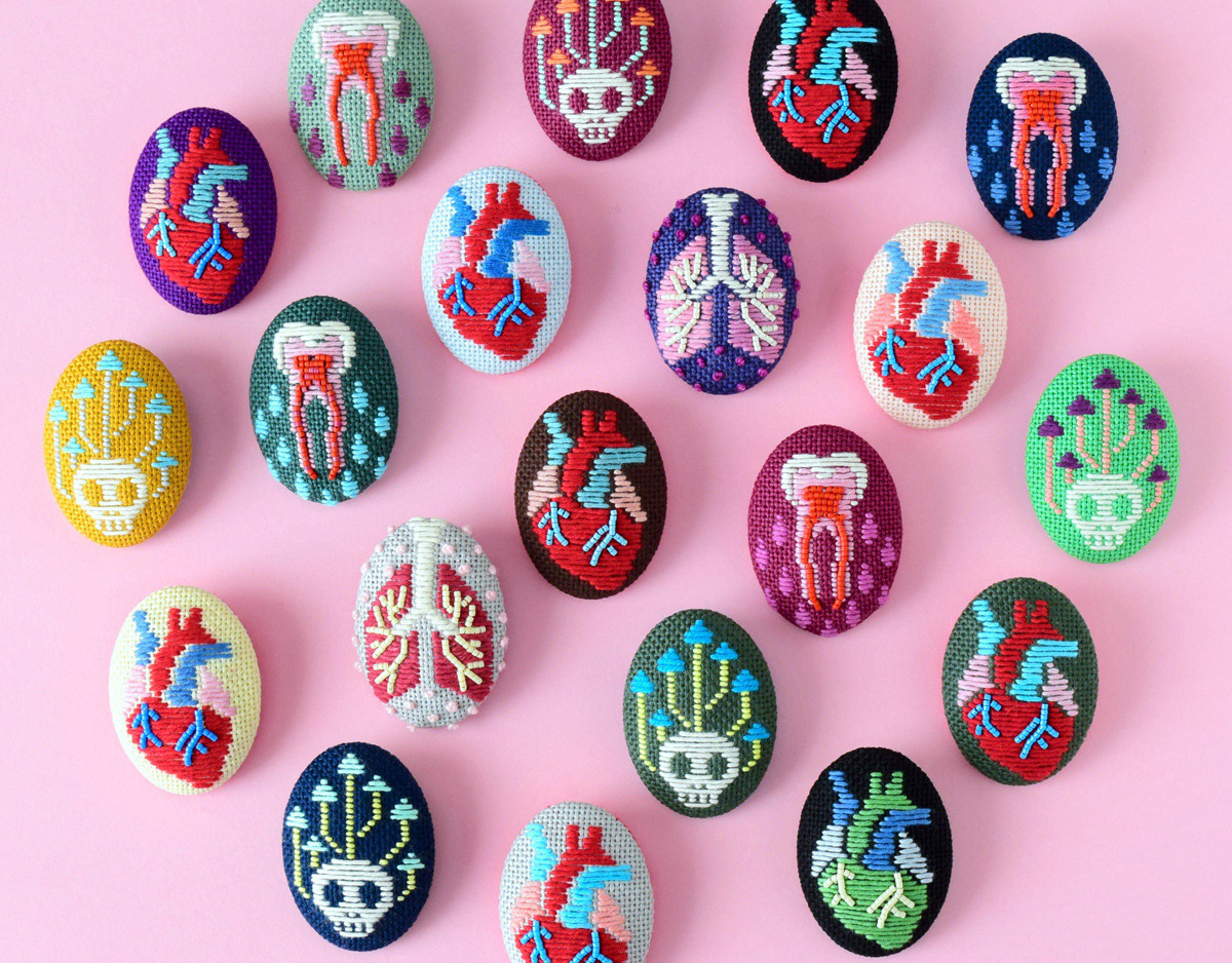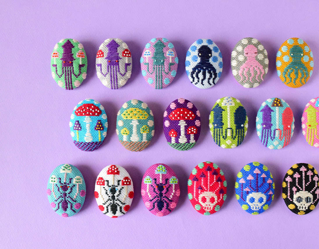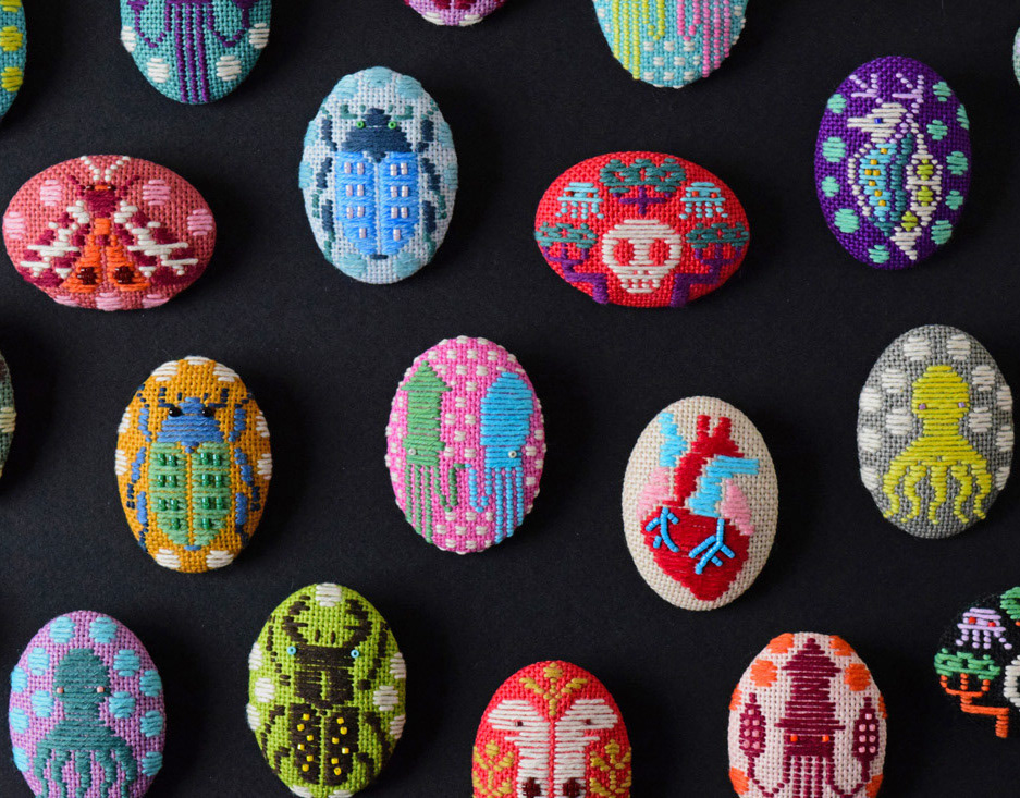 Embroidered Brooch Sets for Gift Wrapped 2017 Art Show