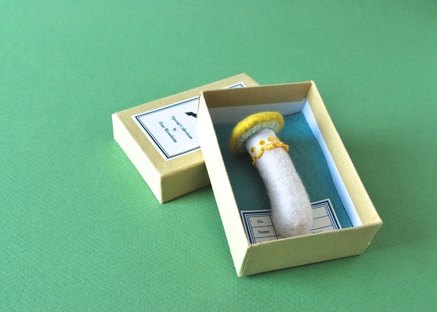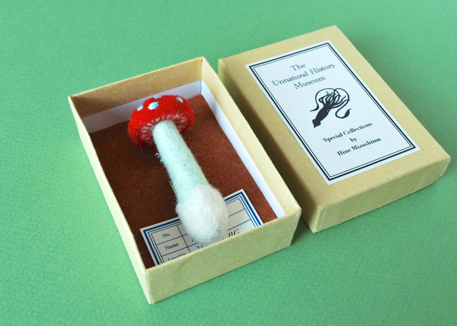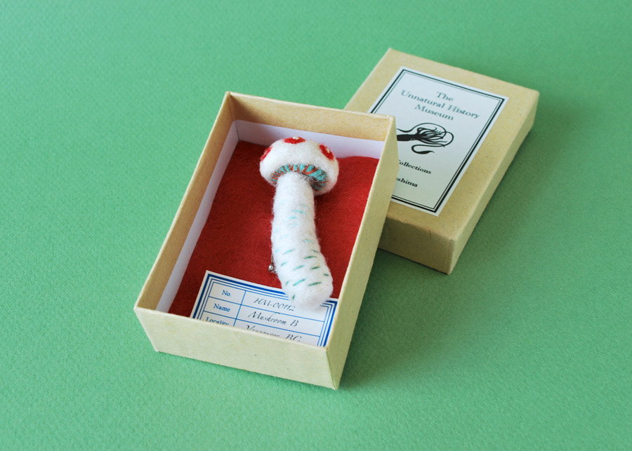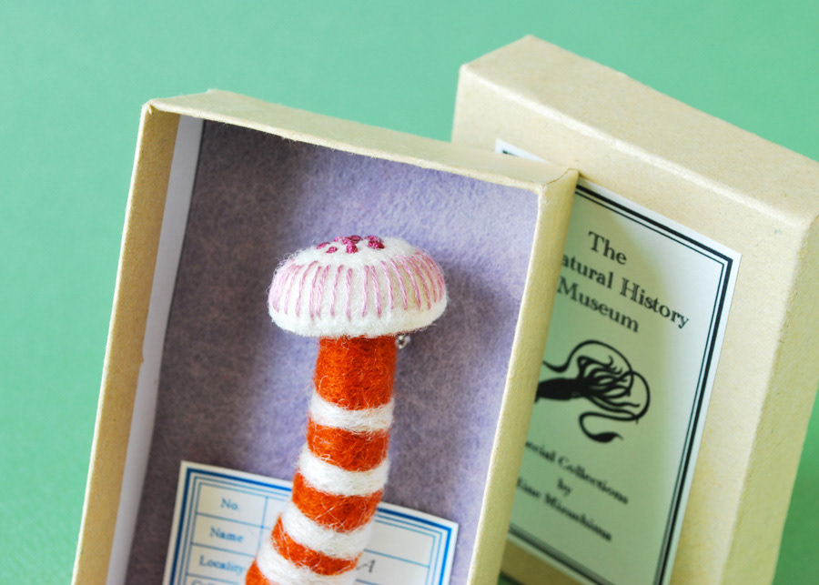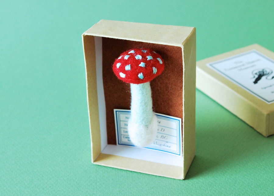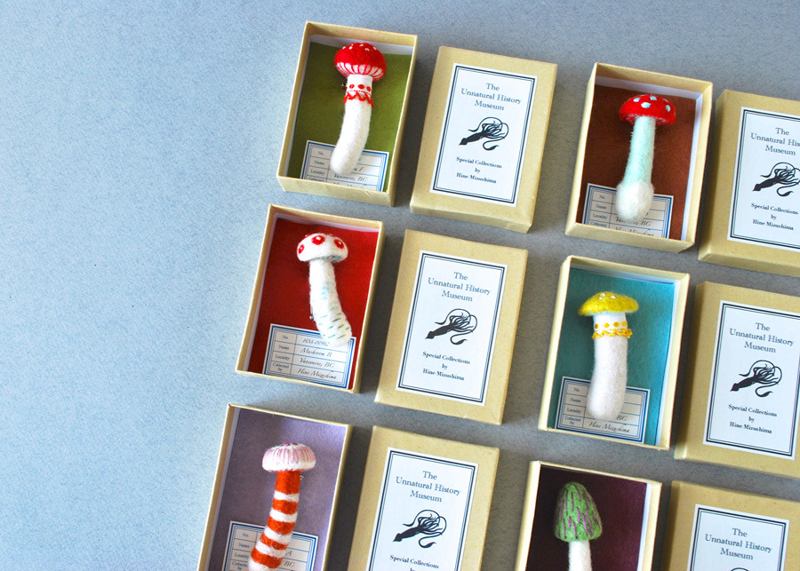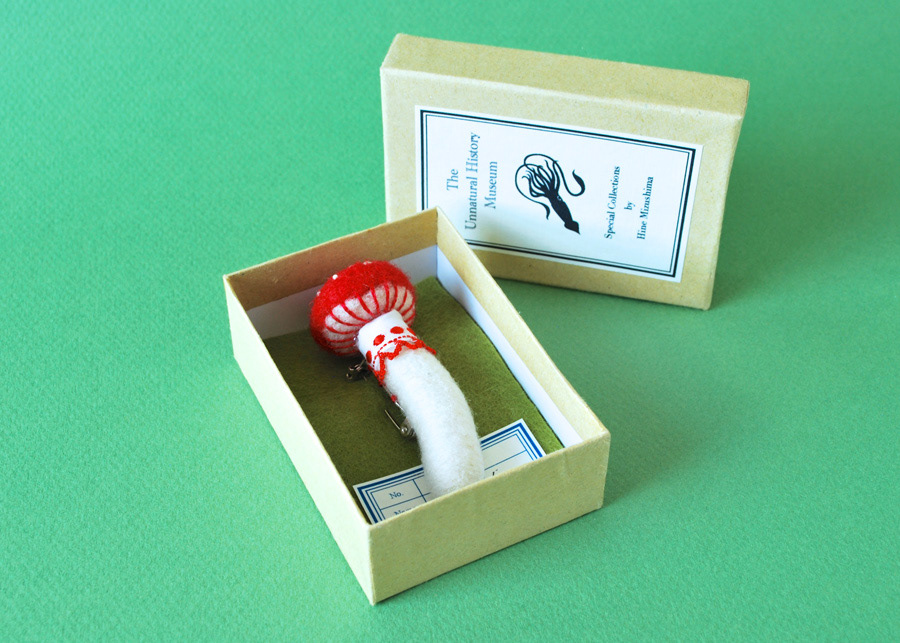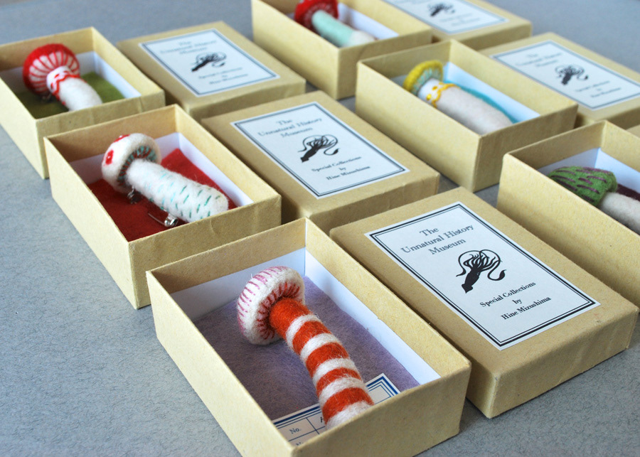 Needlefelted mushroom brooches for a zakka event in Japan.