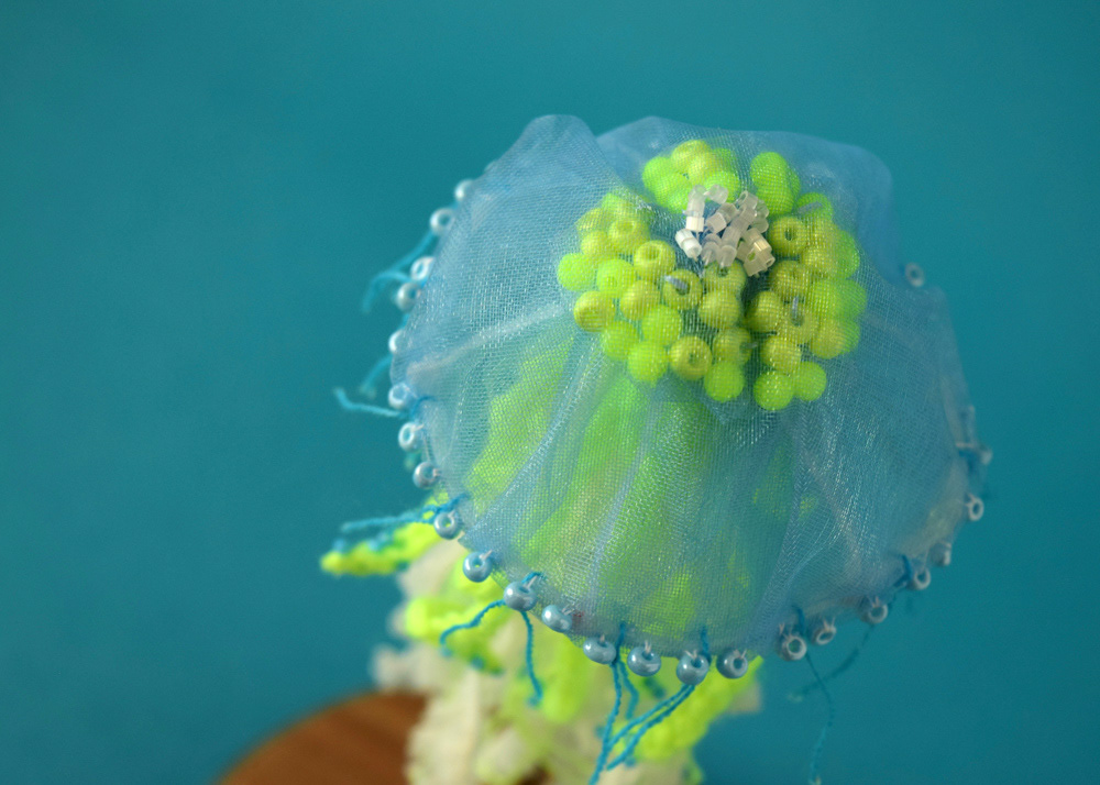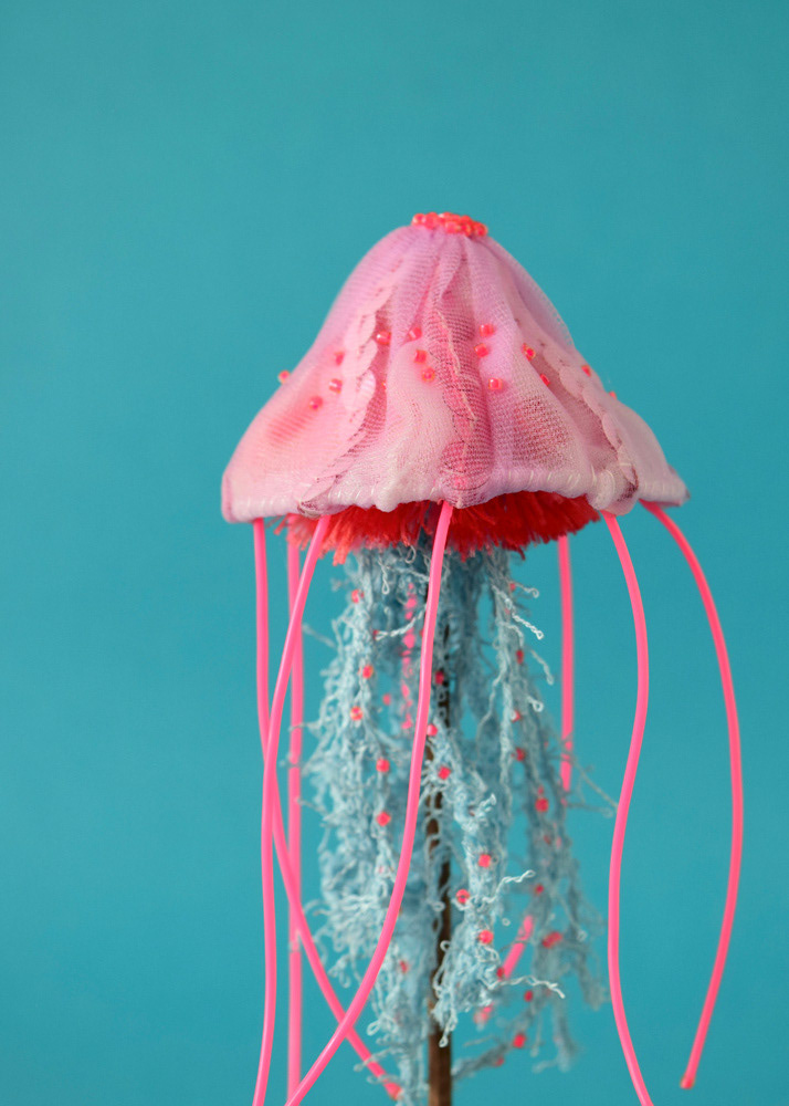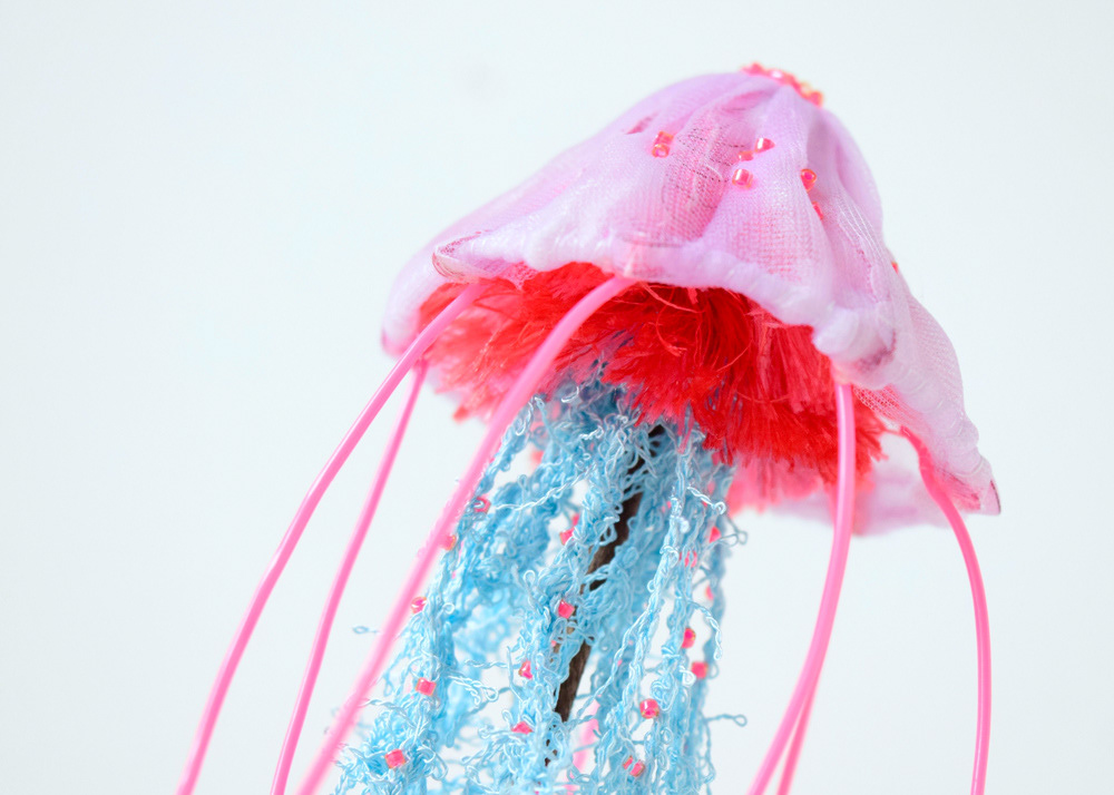This piece, Neon Jellyfish is one of my new soft sculptures for my solo exhibition in Tokyo.