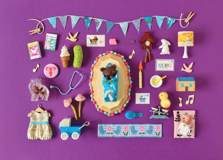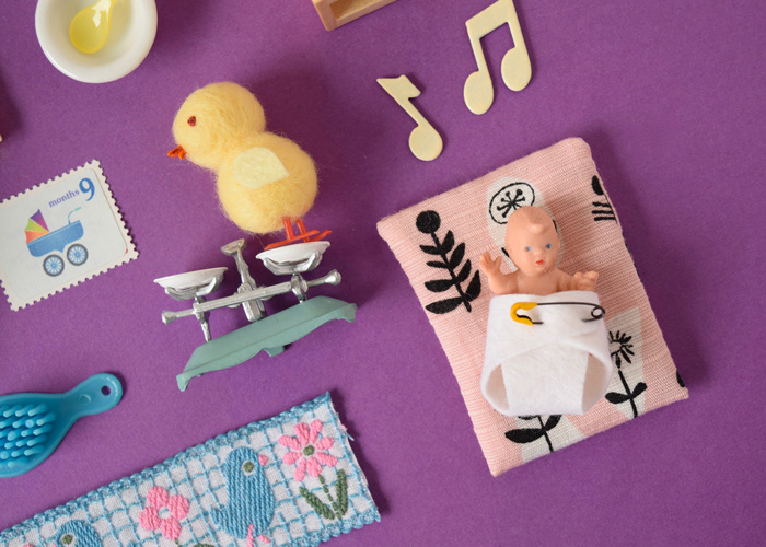 I made a miniature collage about infant, prenatal and parenting themes, for a promotional card.