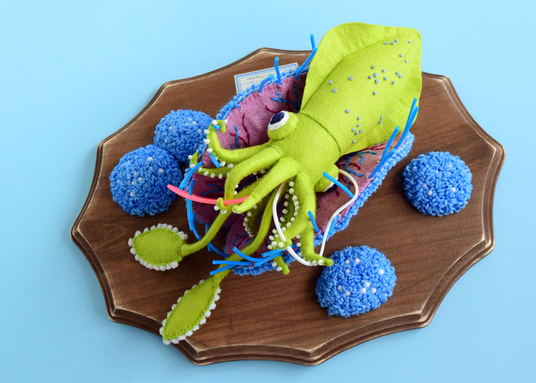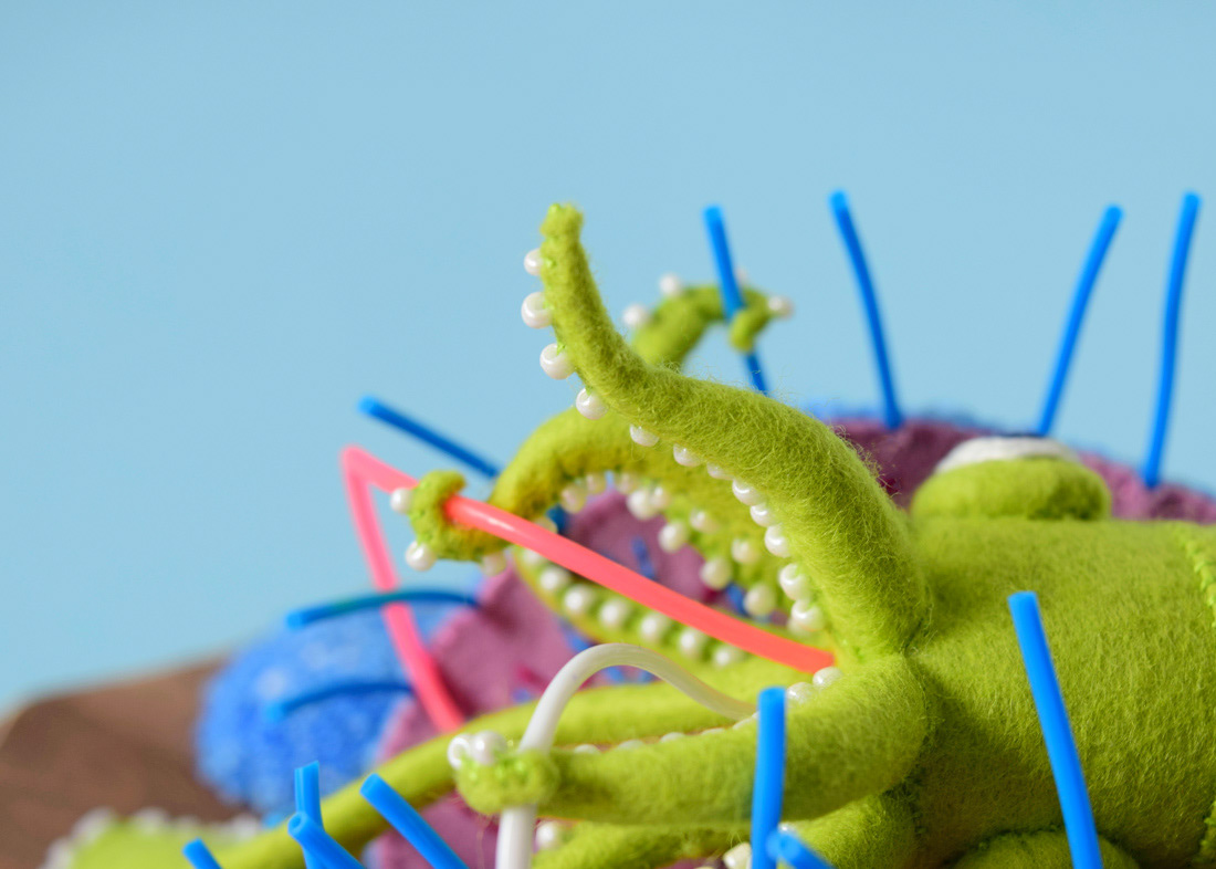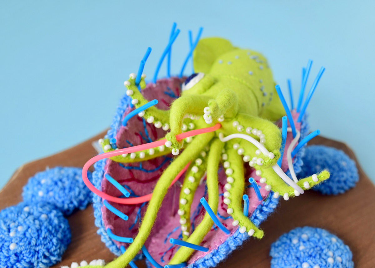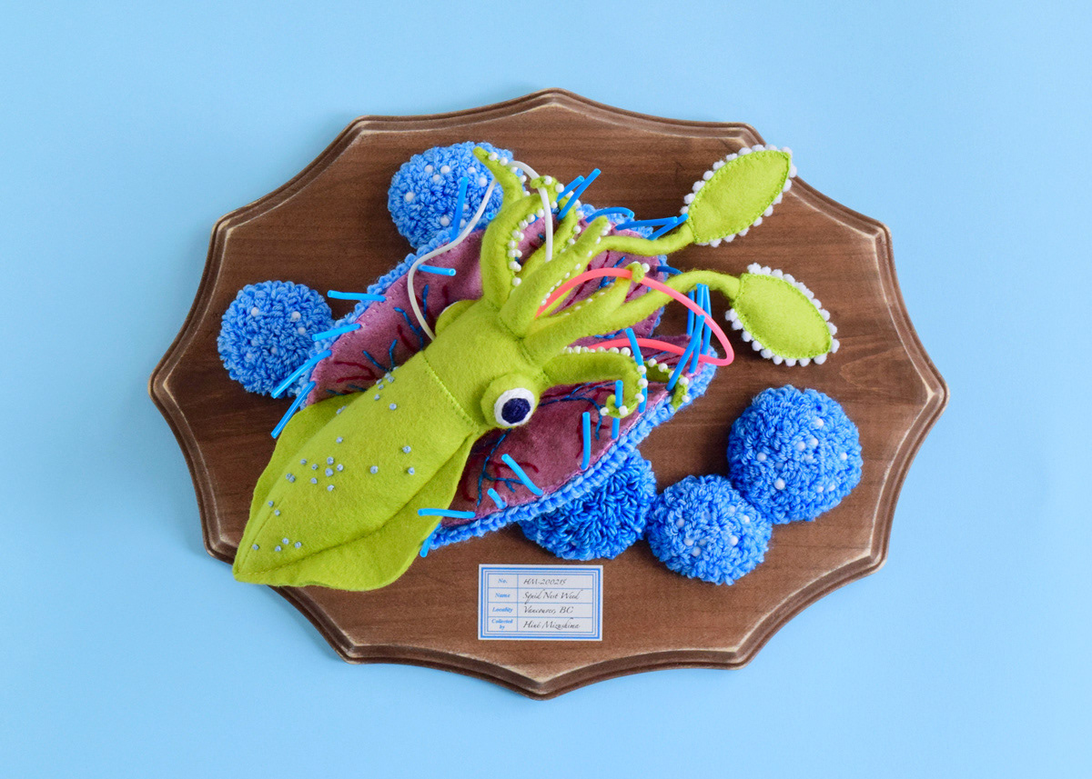 こちらはソフトスカルプチャー作品のひとつ、イカノネドコソウ (幅30cm)。