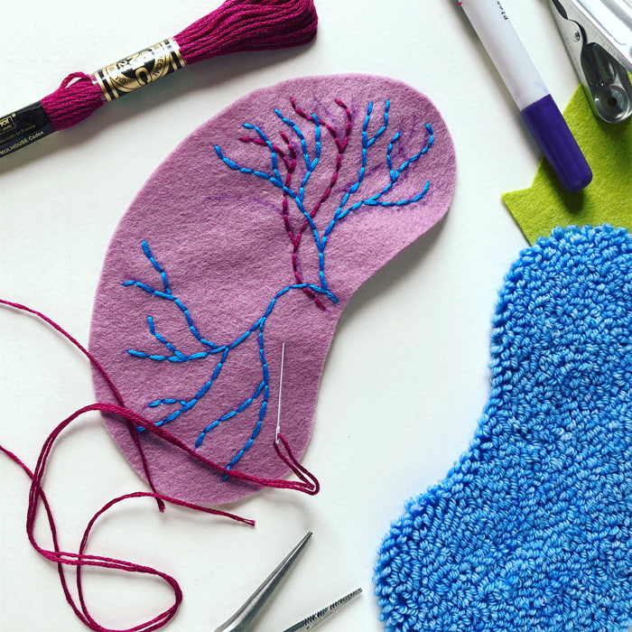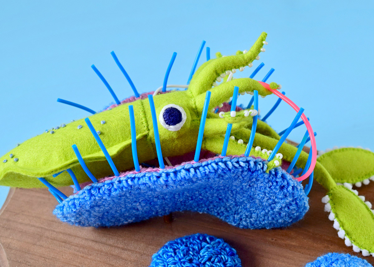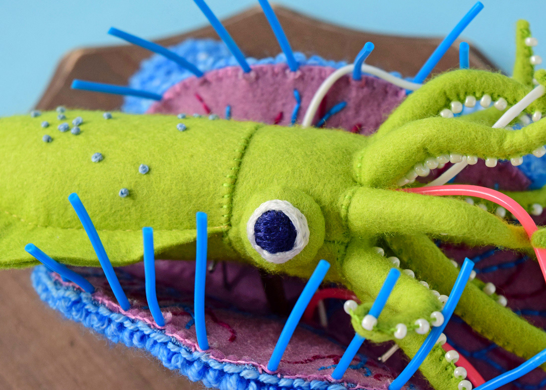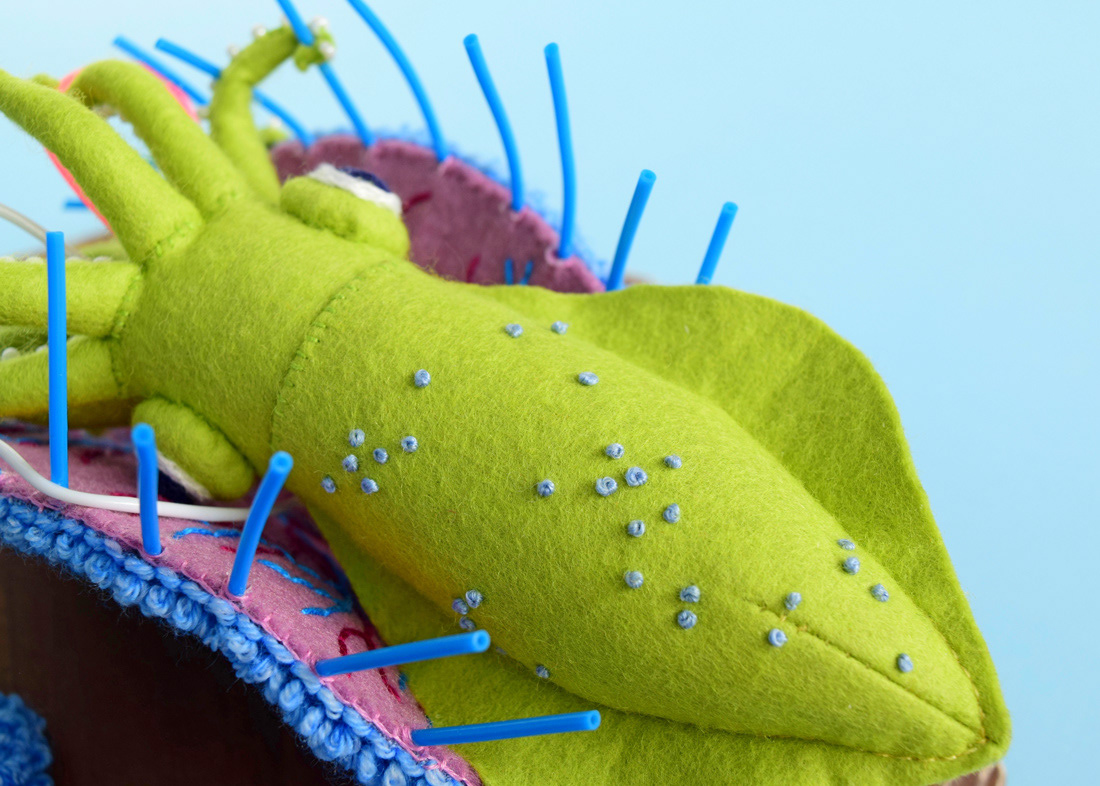 こちらはソフトスカルプチャー作品のひとつ、イカノネドコソウ (幅30cm)。