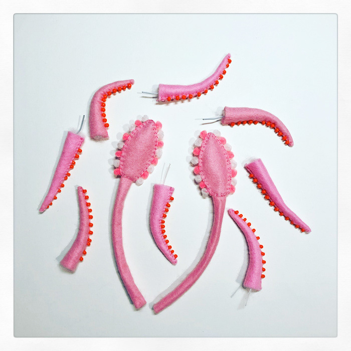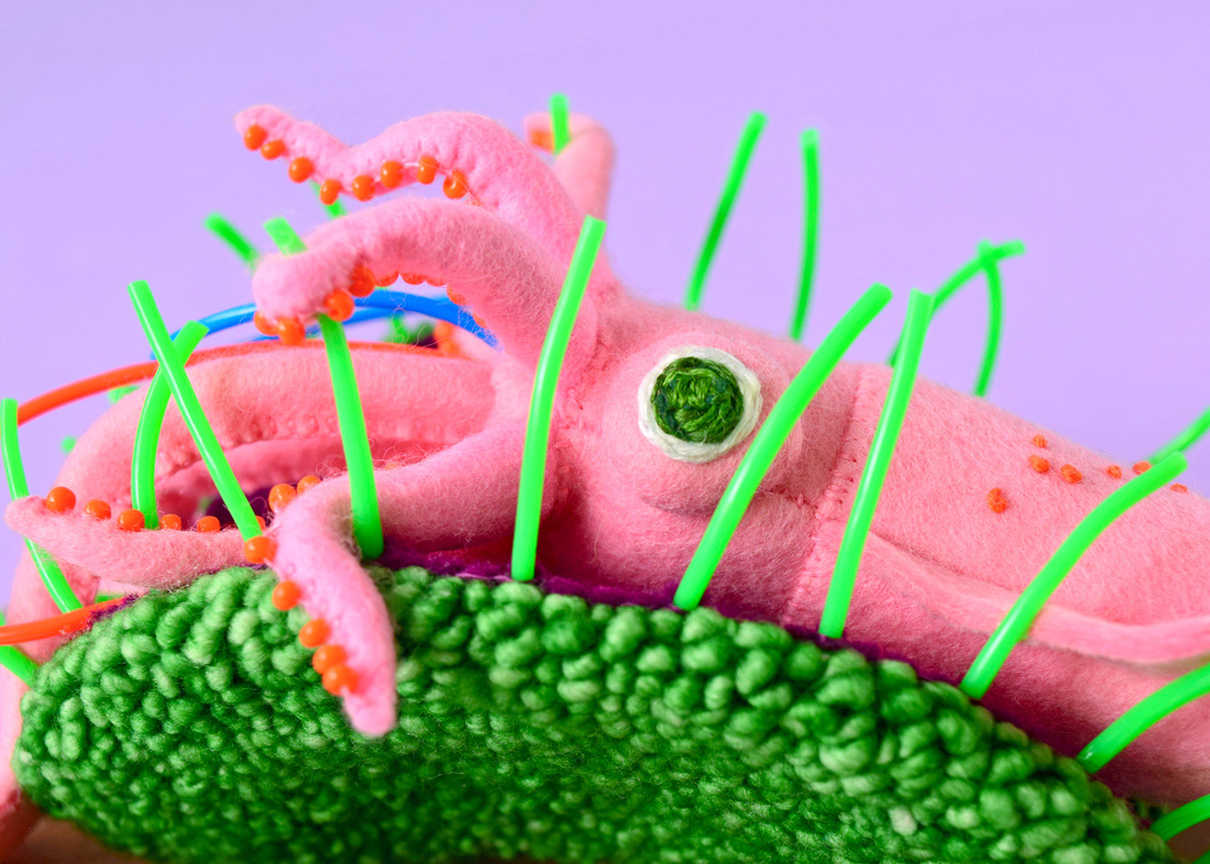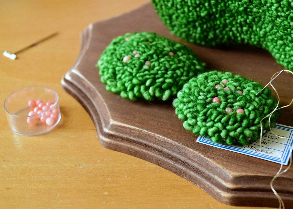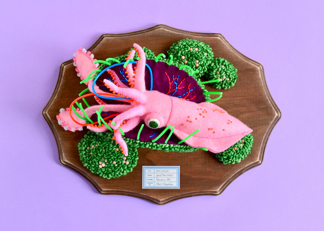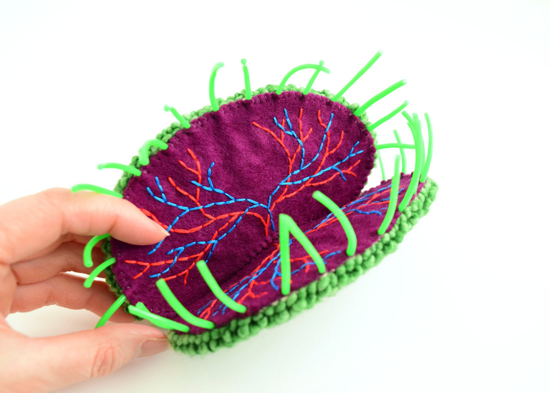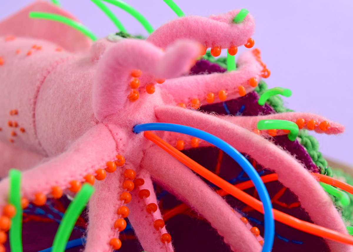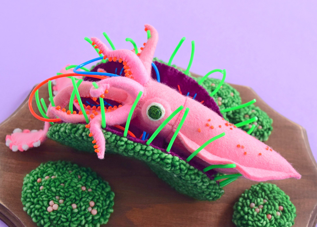 こちらはソフトスカルプチャー作品のひとつ、イカノネドコソウ (幅30cm)。