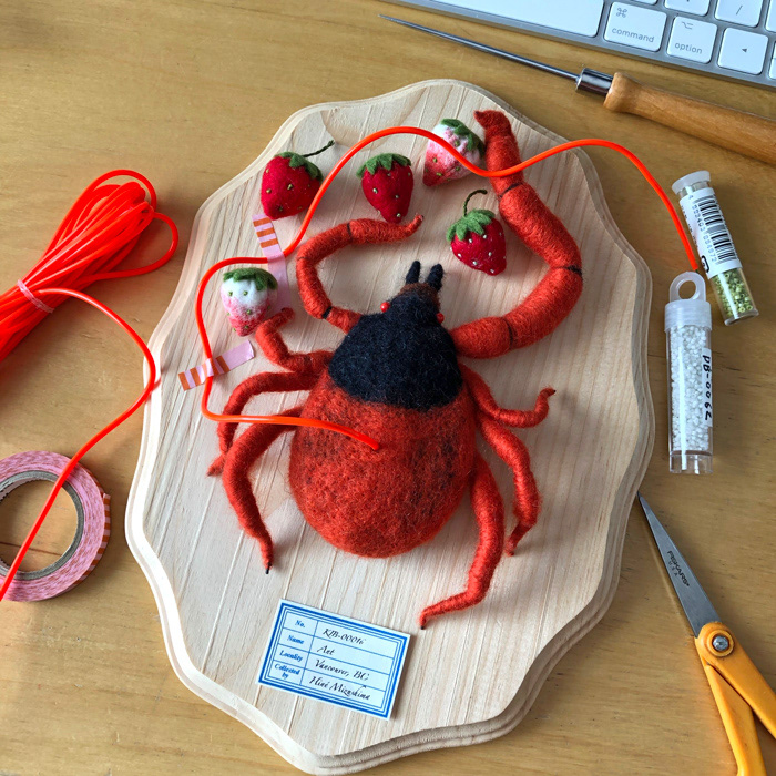 This piece, Strawberry Tick is one of my new soft sculptures for my solo exhibition (sold out).