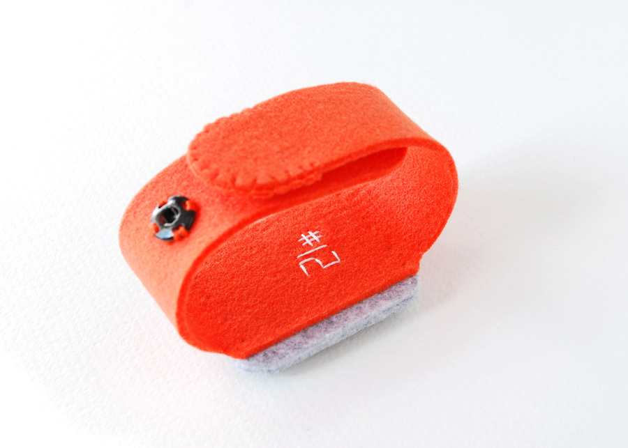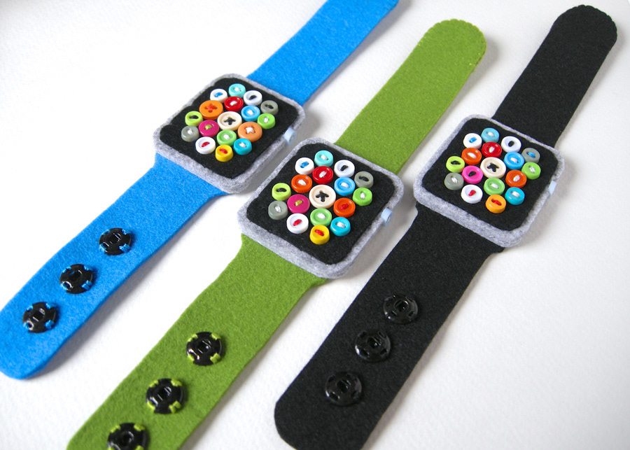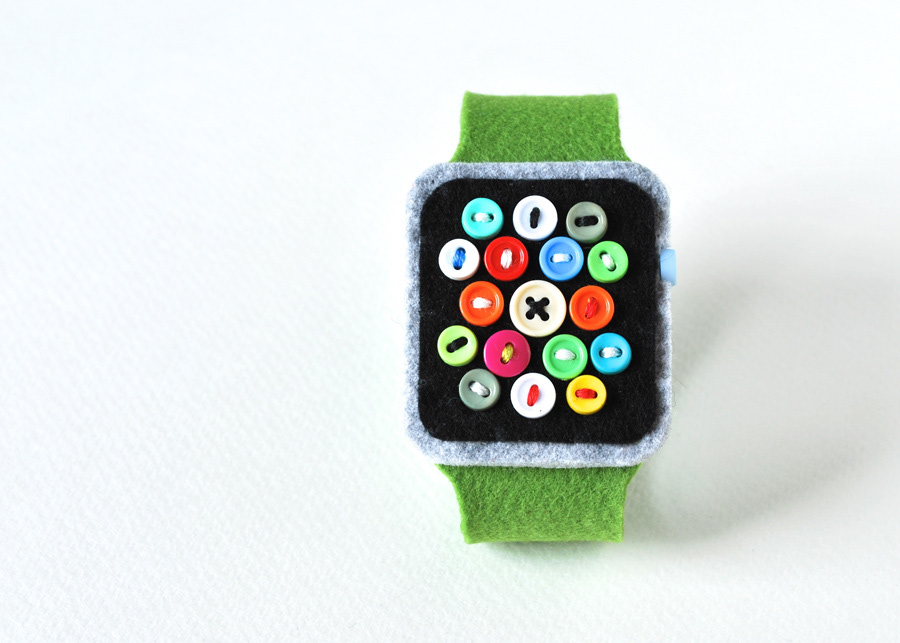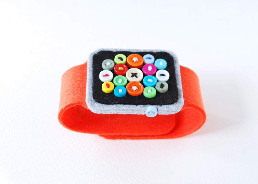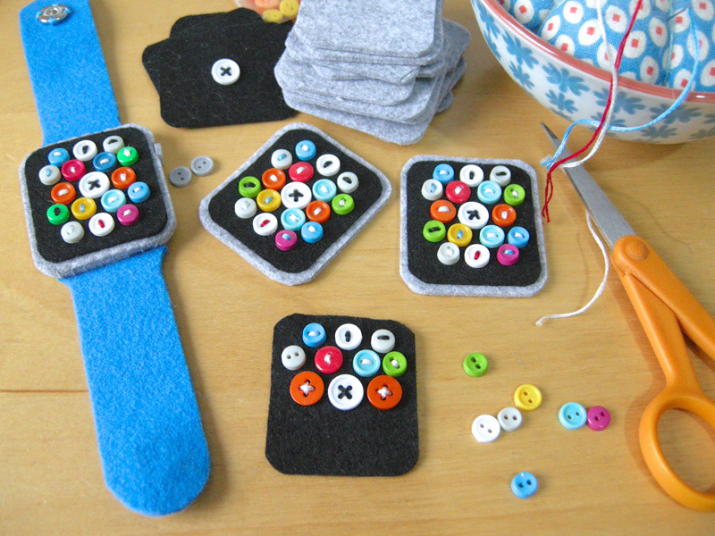 I use high quality Japanese thick felt, with three different sized tiny buttons.