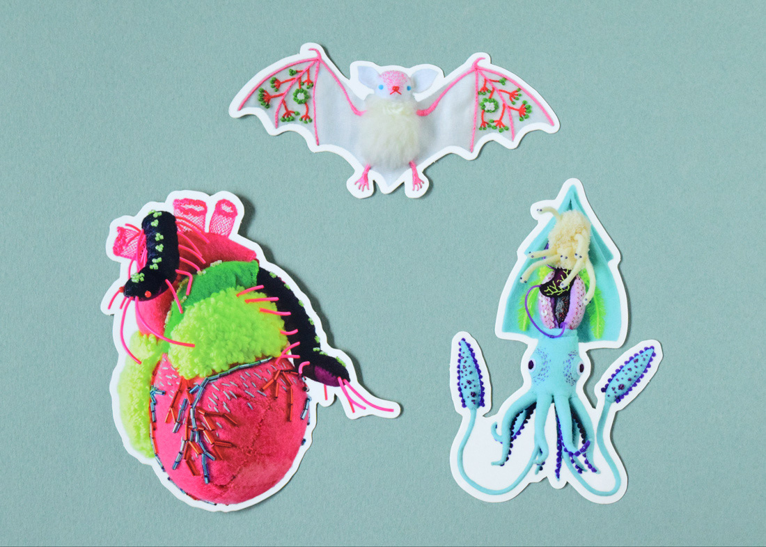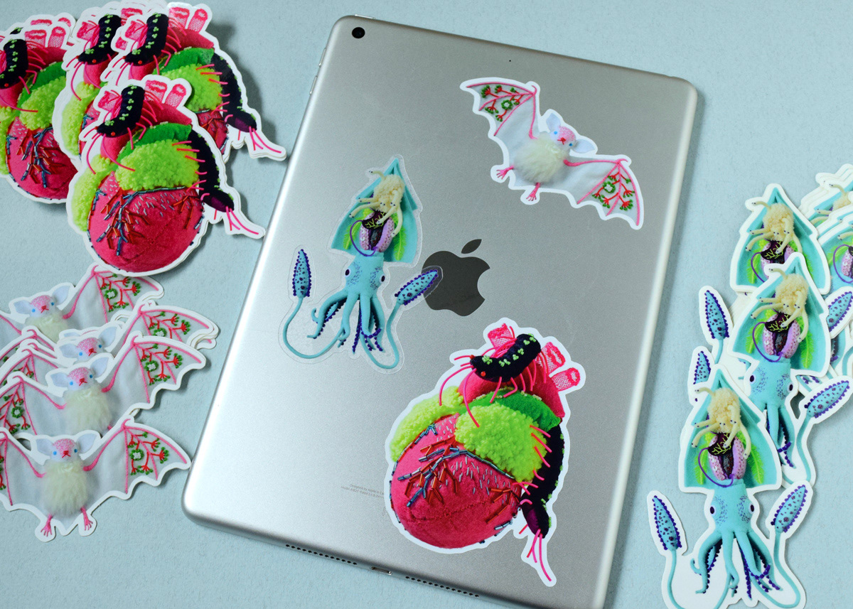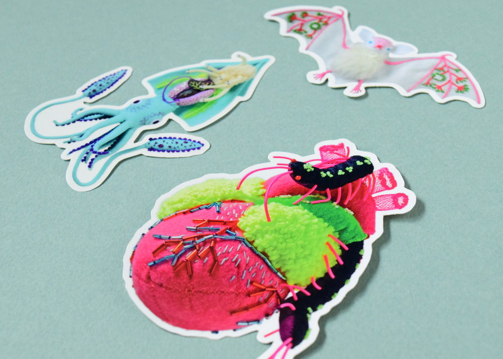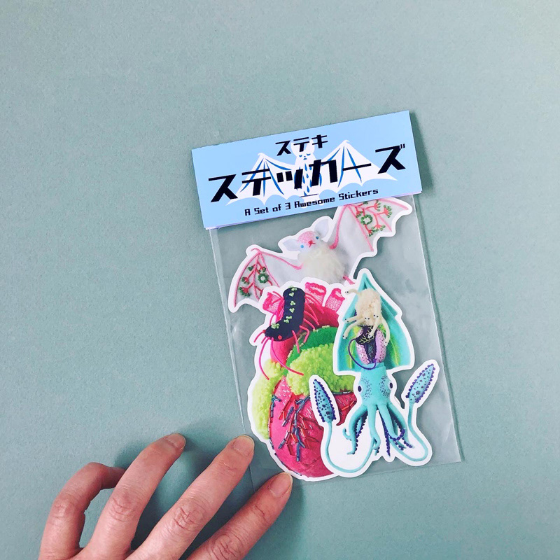 I collaborated with StickerApp, a Swedish company that prints custom stickers, to create glossy die-cut vinyl stickers. I designed the bag topper too.