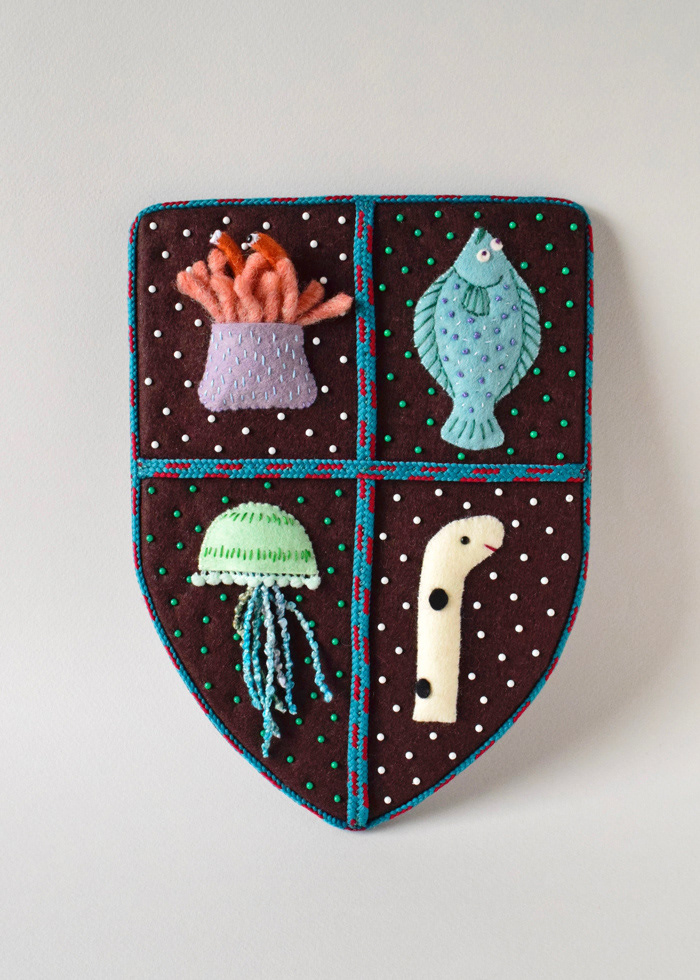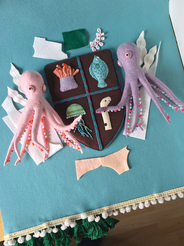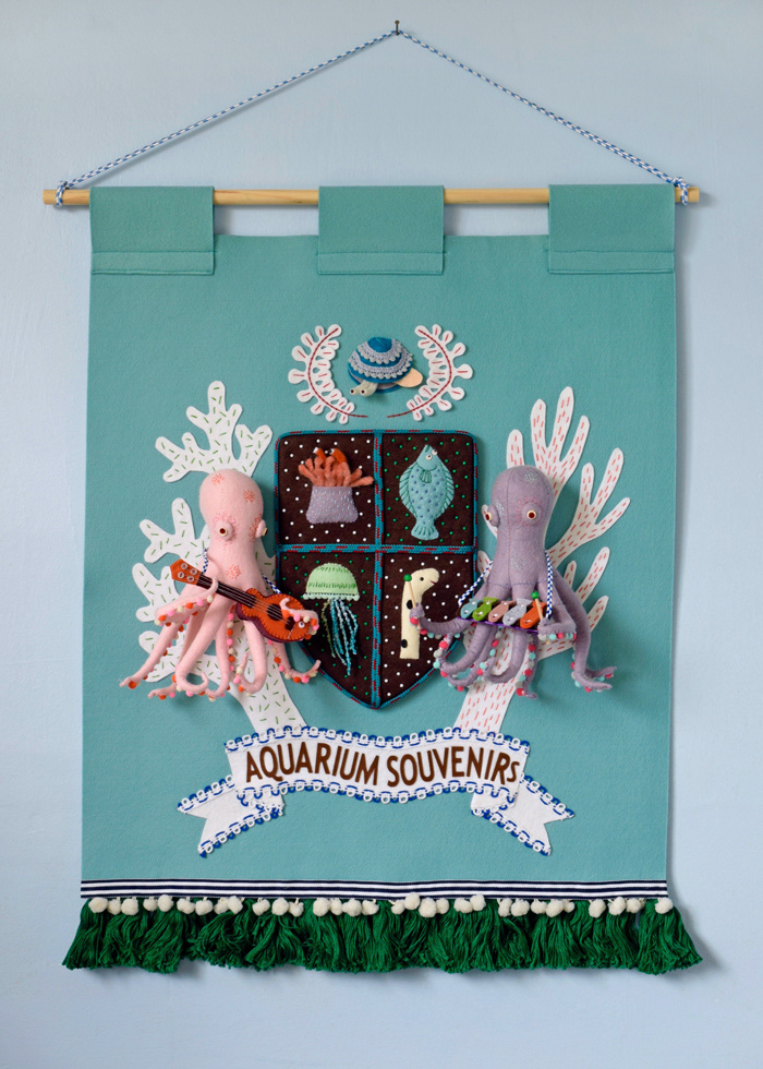 本日4月27日から大阪で始まった個展のメイン作品「王立水族館お土産センター紋章バナー」です。
